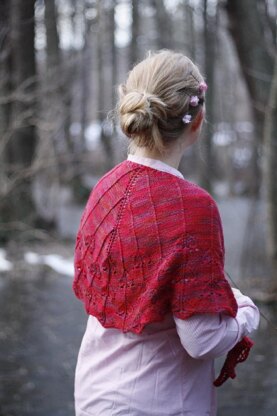 Semisolid shawl used 1 skein Madelinetosh Tosh Merino Light in Mulled Wine [100% merino, 420 yd/384 m per 100g] on 4 mm (US 6) needles. Blocked size is 144 x 46 cm (56 x 18 inches). Gauge: 20 stitches = 10 cm in stockinette.