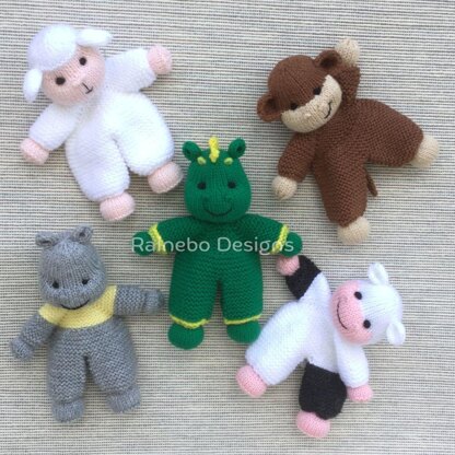 These sweet Little Loveys (Set 2) are knit in the round, using Magic Loop or double pointed needles, and are knit from top to bottom, as one piece. Ears and tails are knit separately and added later. Only the head, “hands” and “feet” are stuffed. The body, “arms” and legs are NOT stuffed. The body, “arms” and legs are knit in Garter Stitch. The head, “hands” and “feet” are knit in Stockinette Stitch. Intarsia is used to place the contrast color patches on some of the heads.