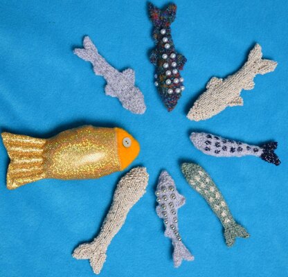 The pattern contains instructions for THREE different types of minnow. The Beaded Minnow explains how to incorporate beads into your knitting. Then there are two different Bobble Minnows, with separate instructions for a Single-colour or Two-colour fish. The top and bottom fins are also optional.