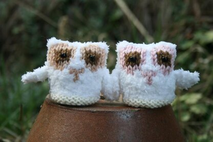 These cute owlets were inspired by my Oliver Owl Sweater motif and my daughter’s request that I should design a softie with the same fleecy, white yarn used in that design. I, therefore, decided to stick with owls and base my softie on a baby owl similar to the Oliver Owl motif and to make him a friend for company! Oliver and Olivia stand unaided, at a height of approximately 6cm/2.25in. The owlets are knit flat on two needles using DK weight yarn. To make larger owls you could use a chunky weight yarn or to make them smaller you could use 4ply; remember to use smaller needles than suggested by the yarn company so that stuffing does not show through.