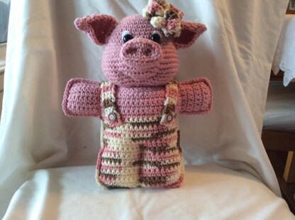 Meet Penelopig, all dressed up to go to the market. This little piggee pattern could easily be changed to a boy piggee, just change the colour of the overalls to blue? And omit the flower :)