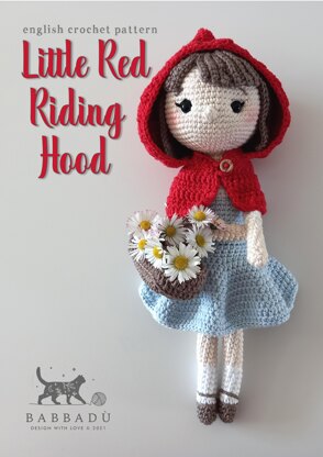 # THIS IS A PDF ENGLISH CROCHET PATTERN, NOT THE FINISHED DOLL #. If you are looking for the finished doll, please contact me! To make LITTLE RED RIDING HOOD you need: MATERIALS I used DROPS Muskat 50gr/100m DK yarn in cream for skin, white, black, light ice blue, brown and red. black thread for eyeliner hook 3 mm black safety eyes 9 mm fiberfill tapestry needle scissors pins stitch markers little wood button SIZE About 30 cm / 12 inches tall when made with the indicated yarn. SKILLS NEEDED Crochet: magic ring, slip stitch, single crochet, half double crochet, double crochet, bobble stitch, increase, decrease # Photo Tutorial with principal steps # "This pattern is available for personal use only. You can't sell, share, reproduce, translate or distribute this pattern (in whole or in parts). If you want to sell a crochet doll made with this pattern please credit me as the designer in the descriptions: "pattern design by Cinzia Ruggiero for Babbadù”