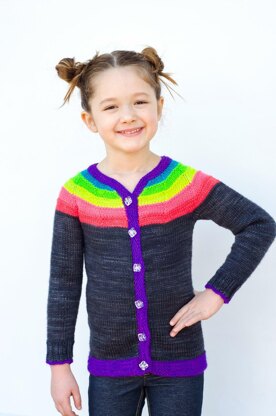 The Right as Rainbow Baby Cardigan is a nifty little sweater that goes with everything! SIMPLE and FAST, this cardigan is knit seamlessly from the bottom up. It is a great pattern for beginners looking to branch out into more challenging projects AND it’s a stash buster! BONUS: This sweater includes your baby’s favorite accessory: Geometry! Don’t worry. You won’t have to do any math (I did it for you), but when you finish the cardigan, your baby can enjoy a fabulous rainbow nonagon. Tell me: who doesn’t love a nonagon?