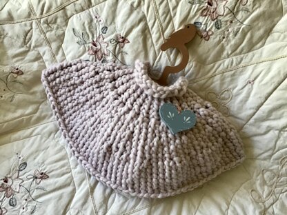 Poncho can be made longer by simply continuing to knit in the round.