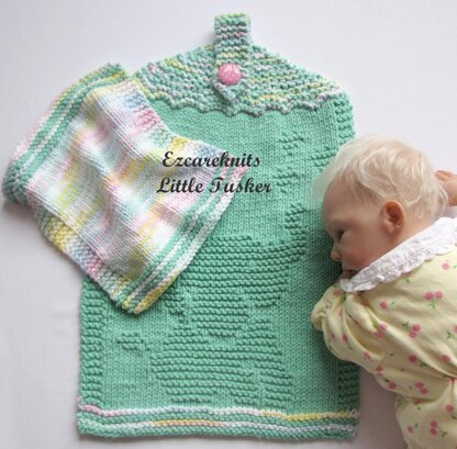 A hand towel and washcloth knitting pattern set with a baby elephant sitting with three tiny hearts. This little elephant was named Little Tusker for his size. This set will make for a great gift to add to any home décor. The towel and washcloth are written in English and have step by step instructions.