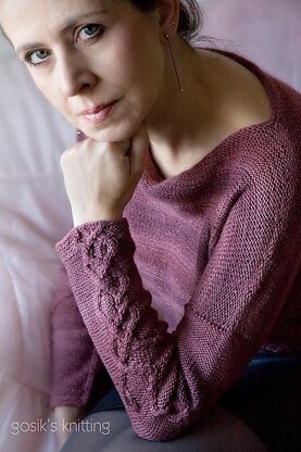 "Lively" is a stylish pullover with a wide upper body and skinny sleeves. The Reverse Stockinette allows the knitter to slip into restful automatic knitting broken up by the beauty of the cables that keep things interesting. This simple, yet attractive sweater is worked top down, completely seamless with a short row section in the shoulders and two fake seam stitches on the sides. File contents English and Polish versions!