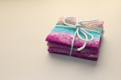 Several years ago I adapted my Lizard Ridge Dishcloth pattern to make some coasters for my knitting friends. I’ve had a few requests for more detailed instructions so I finally knit up another set so I could take photos of the process and wrote up a coaster-specific pattern. You can find more photos of the process here on my blog. These knit up quickly, are very forgiving of mistakes, are a great way to use up leftovers, and make useful gifts!
