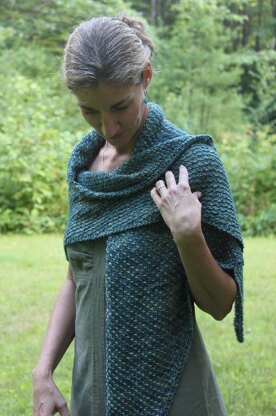 Lizard Skin Shawl is knit from one tip to the other and features an interesting, allover textured stitch pattern. Increases down one side and decreases up the other shape it into a triangle.