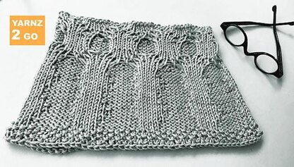 An intriguing cable motif and simple knits and purls create wonderful textures in the new Lizzie cowl. Knitted in the round from the bottom up. From a gorgeous cable border which then turns into a wavy vertical interest upwards to the final seed stitch edge.