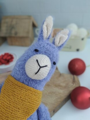 We knit on two needles. The size of the finished toy depends on the yarn you choose. All details of the llama are safe, we also tie out the eyes. Sew on the muzzle and ears. The handkerchief is included in the description of the toy.