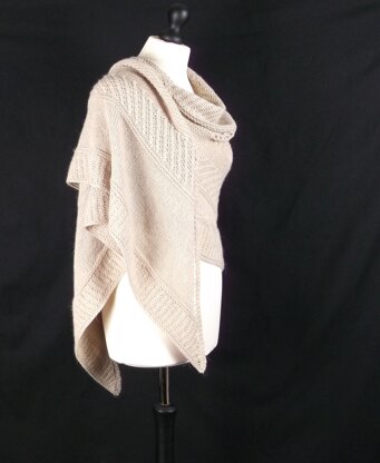 Soft, lightweight and with beautiful drape. This triangular wrap uses short rows to create length in the wingspan and stitch patterns that create texture.  Techniques used  Garter tab cast on  Flat brioche stitch  Twisted stitches  Yarn over eyelets  Garter short rows  Stocking stitch short rows