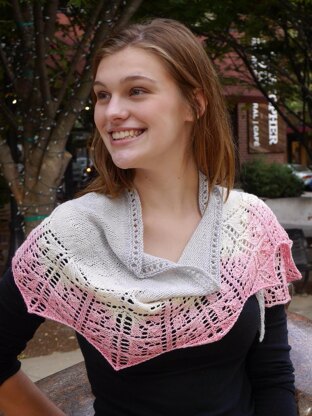 Shawlette shown in KnitCircus Greatest of Ease in Come What May (gradient pink).