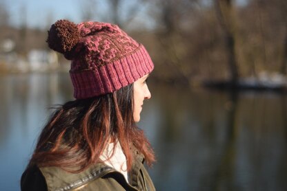 Loblollyis named for a certain native pine tree that grows in the swampy areas of Maryland. Look carefully at this slightly slouchy hat and you can see the tall trunks and pine needles created with slip-stitch knitting, working only one color per round.