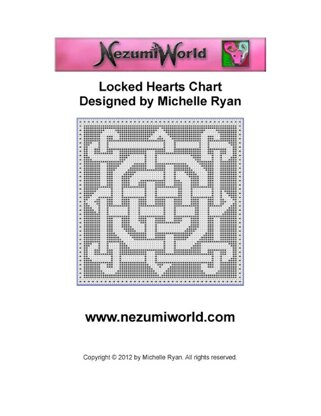 Interwoven knotwork hearts chart (the first row is written for both a 1 x 1 & 1 x 2 filet crochet grid). Additional information & sizes using different yarns is also included. i.e. Using Crochet Cotton Thread size 10: approx. width = 18.2 inches, height = 19.8 inches, Using Worsted Weight Yarn: approx. width = 71.1 inches, height = 72.7 inches Uses American crochet terms. This makes a beautiful runner, table setting or chair back for your home (depending on yarn/ thread used). Please note: This pattern is also available in the E-Booklet “Celtic Knotwork Hearts Collection” which contains this and 7 other charts.