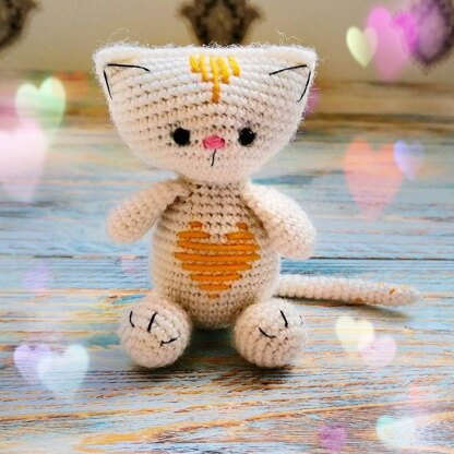 This PDF pattern includes 9 pages with step by step instructions and photos so you can crochet your own cat. Finished toy is about 3.3" (8 cm.) tall when you use yarn 100g=400m and a 2.25 mm. crochet hook. For this pattern you need to have basic crochet and amigurumi skills and to know how to read crochet patterns. You need to know the following crochet terms: • ch – chain • mr – magic ring • sc – single crochet (UK=double crochet) • ss – slip stitch • inc – increase • dec – decrease Supplies: • Yarn (100g=400m or other) • 2.25 mm. crochet hook • 2 small beads • Black, pink and orange thread or yarn • Yarn needle • Stitch markers • Scissors, pins • Stuffing material of your choice This pattern is for personal use only. PLEASE DO NOT COPY, SHARE, TRANSLATE OR DISTRIBUTE PATTERN. You can sell the toys you make!
