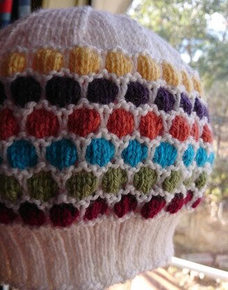 Lola-Jo hat allows the knitter to highlight beautiful colours within the Tuck stitch band.
