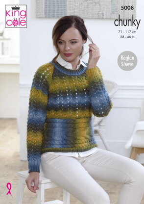 Long and Short Sleeved Sweater in King Cole Riot Chunky - 5008 - Downloadable PDF