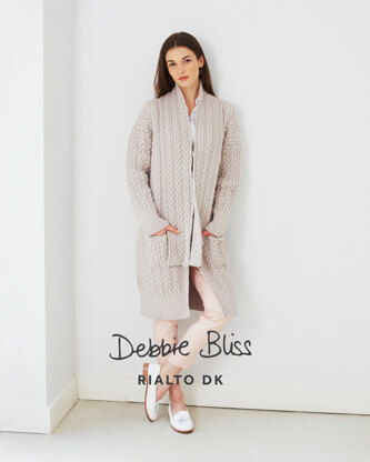 Download the PDF pattern for "Long Cable Coat & Scarf" - Coat Knitting Pattern For Women in Debbie Bliss Rialto DK - DB030 & start knitting today!