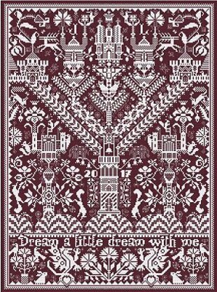 Dream a little dream with me. Model stitched on fabric of your choice with any one color of floss. If stitching on an 18 Ct. Aida (or 36 Ct. Linen), with a single thread, you will need approximately 56.6 meters of 6 ply thread. Stitch Count: 209x285.
