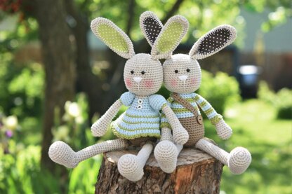 Long-ear Rabbit is a gleeful bunny – the best companion for little boys to travel through their childhood. He`s wearing a striped sweater and non-removable trousers with suspenders. Ears covered with fabric make him really special.
