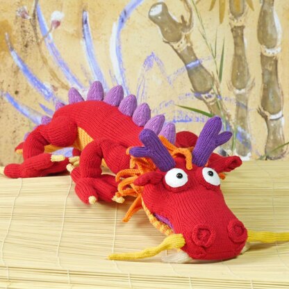 Long-Long ist ein richtiger chinesischer Glücksdrache, mit einem Ochsenkopf, Rehgeweih, Löwenmähne, Adlerklauen und einem Schlangenkörper. Sie können ihn als Handpuppe spielen, aber er funktioniert dank eines Inletts, dass je nach Bedarf entfernt oder eingesetzt wird, auch als dicker Kuscheldrache. Das unten engegeben Garn ist ein Vorschlag, leider sind nicht mehr alle Long-Long-Originalfarben erhältlich. Er sieht auch in anderen Farben toll aus.
