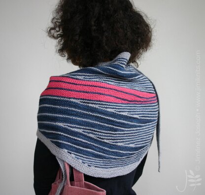 LongStuff A long and narrow shawl, made using 2 or more colours of yarn. It is knitted from the bottom-up with meandering short row stripes that build up as you go. The edging is picked up and knitted to form a neat border. Go as creative as you like with colour!