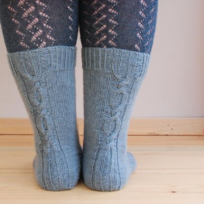 Make a statement with the elongated cable of Longus taking centre stage. Knitted from the top down, these socks are slightly longer than the others. They feature a decorative heel flap and the heel is turned using a Dutch or square heel turn.