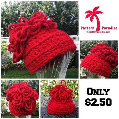 This is a cute chunky hat that works up quickly and will keep little heads warm. There are textured ridges and a playful loopy pom pom to finish it off -- perfect for photo shoots too!