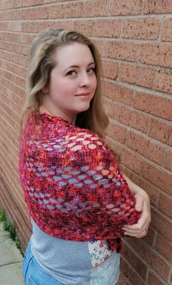 The Lost and Found Wrap is a one piece rectangular wrap that was inspired by Rusty Ferret's 'Depressed as Shit' collection of colourways. I used the colour 'I feel lost' which I think applies to all of us sometimes, and the 'found' element of the design is about how we return to things that are familiar for comfort. In this case it is the 2 simple repeats of the pattern.