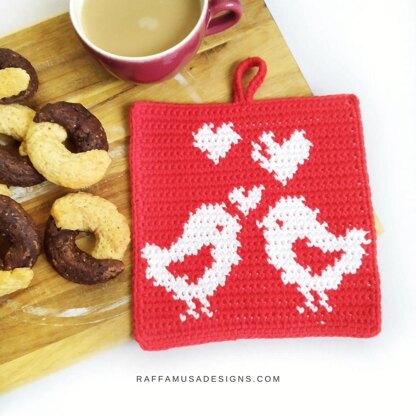 This tapestry crochet Love Birds Potholder is part of my "A Year of Potholders" collection. For this collection, I will be releasing a tapestry crochet potholder pattern every month for the entire 2022.
