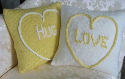 The pattern is for two cushions - Love and Hug worked in alternate colourways.