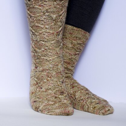Worked in the round, Love is Strange contains both cuff-down and toe-up written directions and a chart for the pattern stitch. The pattern has instructions for an afterthought heel, but you may substitute whatever heel you enjoy using.