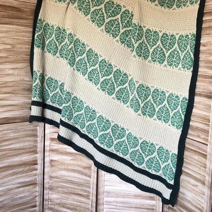 I love the bright pop of purple in the spring that comes with the blooming of the Eastern Redbud trees in the midwestern US. These trees also have lovely heart-shaped leaves which were the inspiration for this stranded afghan. The panels of stranded colorwork are paired with a textured slipped stitch pattern for variety. It is framed with a simple garter stitch border in a contrasting color. Knit here in a soft, squishy nylon & acrylic blend yarn that is easy to care for and comes in a wide variety of colors, it is perfect for a gift for a loved one!