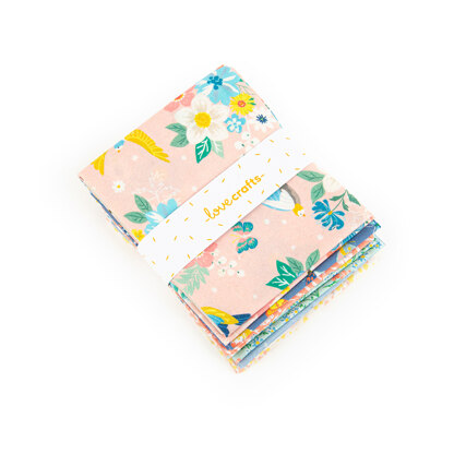 Spring has sprung at LoveCrafts in our gorgeously winsome Spring Garden fabric collection. Inspired by a British garden paradise, you can almost hear the birds singing as you sew away happily with our new fabric prints: Honeybees, Wild Flowers, Butterflies, Garden Birds, Pretty Stems and Confetti Prints, each in two different spring/summer colourways. Make uplifting quilts, picnic blankets, garments, bags, baskets and beautiful accessories in these fabulous 100% cotton fabrics. Dream in garden colours! This gorgeous collection is available in cut to length, Fat Quarter Bundles, 10" square pack multis, 5" charm pack multis, and 2.5" strip roll multis for all your favourite sewing projects.