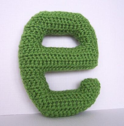 This letter e is approximately 6.5 inches tall and 5 inches wide.. This item is crocheted and then stuffed with polyfill stuffing.