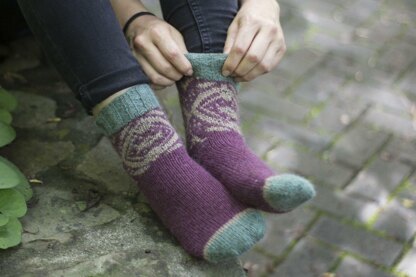 Named after one of my favorite places, the Loyalsock Creek in beautiful northeastern Pennsylvania, the Loyalsocks are as perfect for cozy weekend mornings as they are for a beautiful mountain hike and rest by the campfire. Blacker Yarns Mohair Blends yarn is an excellent match for colorwork socks. The fabric created with the lovely blend of fibers results in a durable, ageless, and comfortable sock.