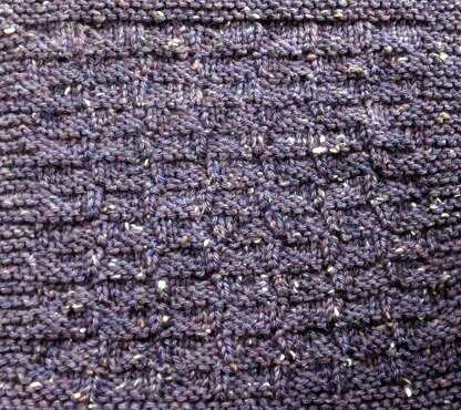 Requirements: -#7 needles -80 yards Worsted weight yarn (sample used Knit Picks Wool of the Andes Tweed in ‘Indigo Heather’) -2 stitch markers -Gauge: 4.5 stitches per inch after blocking, in pattern stitch.
