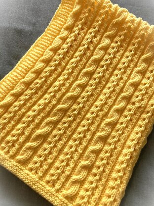 This lovely pattern creates a beautiful lace and cable design with a wonderfully cosy texture, perfect in any colour for a personal and unique baby gift.