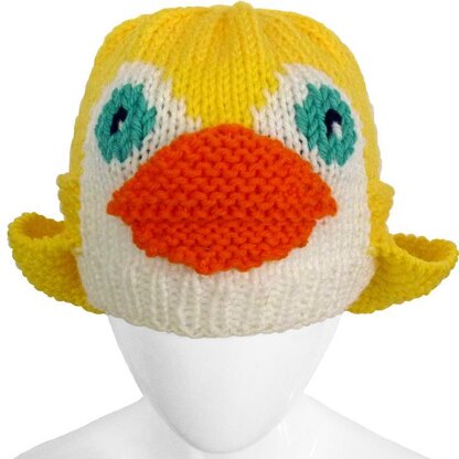 It's a little complex to knit, and I recommend it for an intermediate knitter who’s comfortable working with two yarns at a time. The yellow and white background colors are worked as intarsia blocks, not stranded across the back like Fair Isle knitting. The wings and beak are joined to the hat with a 3-Needle Join. This is similar to a 3-Needle Bind Off, but the stitches remain on the needle to continue knitting. (Detailed instructions and photos are included.) The wings can be worn as ear flaps, or buttoned back. The eyes are added with duplicate stitch.