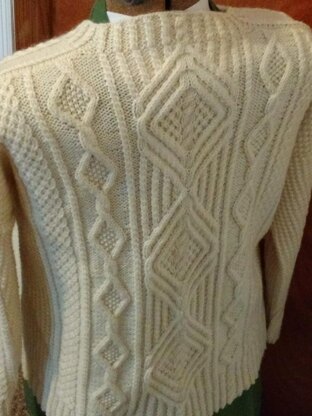 Lucy is charted and requires some advanced cabling skills. Cables are worked on both RS and WS rows. Complete instructions for the WS cables are provided. The front, back, and sleeves are worked flat then seamed. Then the collar is worked in the round.