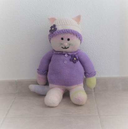 Lucy - this very sweet knitted girl cat stands 64 cm (25 inches) tall and is very cute and cuddly.