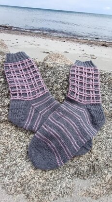 Es gibt ein unterschiedliche Anleitung für den linken und den rechten Socken. Somit liegt der Rundenwechsel immer auf der Innenseite von Bein und Fuß, wo er am wenigsten auffällt.