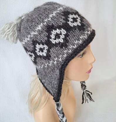 Ear flap style beanie for toddlers, children and adult/teens. Tasseled embellishment and braided pigtails added. Easily completed in a few evenings.