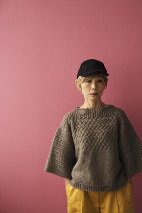 Finished bust measurements: XS (S, M, L, XL, XXL) = 102 (112, 122, 132, 142, 152) cm The sample is in size S on a 5’ / 152 cm tall model with 121⁄2” / 32 cm positive ease at bust.