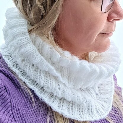 Lumi White pattern is fairly easy pattern to knit. You need to know how to knit, purl, do yarn over and purl two together.