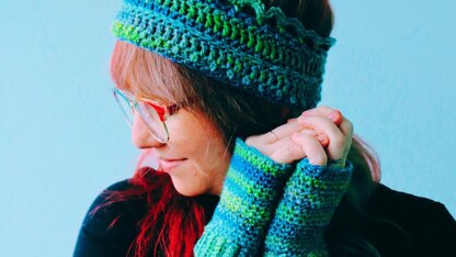 The yarn itself is 100% merino, in sport weight, with approx. 325 yards in the skein. I used about half of my skein, with enough left over for at least another pair of fingerless gloves for Sean.
