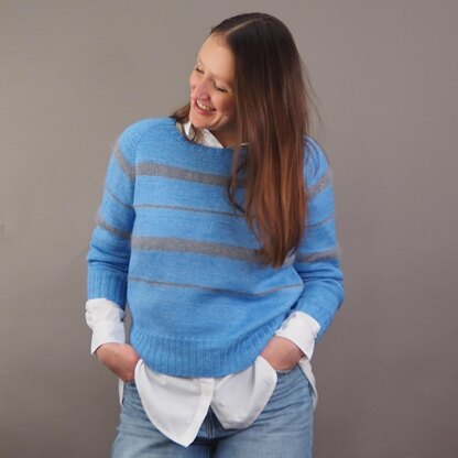 Perfectly matched: N°92 and N°50 from Herzfasern and our new striped raglan. Lykke features [k2, p2] ribbing and stripes in two different widths, which look wonderfully relaxed when knitted with the fluffy N°50.