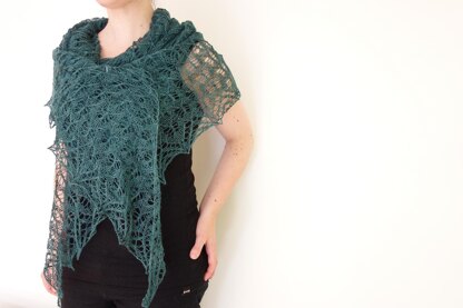 A stunning crescent shawl with a gorgeous leaf lace pattern and pretty pointed edging. We begin by working a wide crescent in garter stitch followed by a deceptively simple lace pattern. This shawl has a huge wingspan, making it perfect to wrap yourself up in – which means that you can wear it in so many different ways!