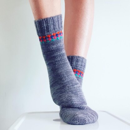 As with all Skipping Pebbles sock patterns two heel options are included - Slip stich heel and Eye of the partridge (pictured).