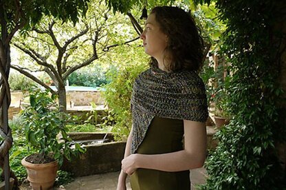 Skill level: Intermediate Size: approximately 52” at widest point by 12” length at points Materials: -Tahki Stacy Charles “Pixie” (42% cotton, 38% acrylic, 20% nylon; 70 yds/50gr); 5 balls woodland glen #001 -Size 10.5 (10mm) 24” circular knitting needles -Stitch markers -Tapestry needle Gauge: 11 sts and 24 rows= 4” (10cm) in stitch pattern.